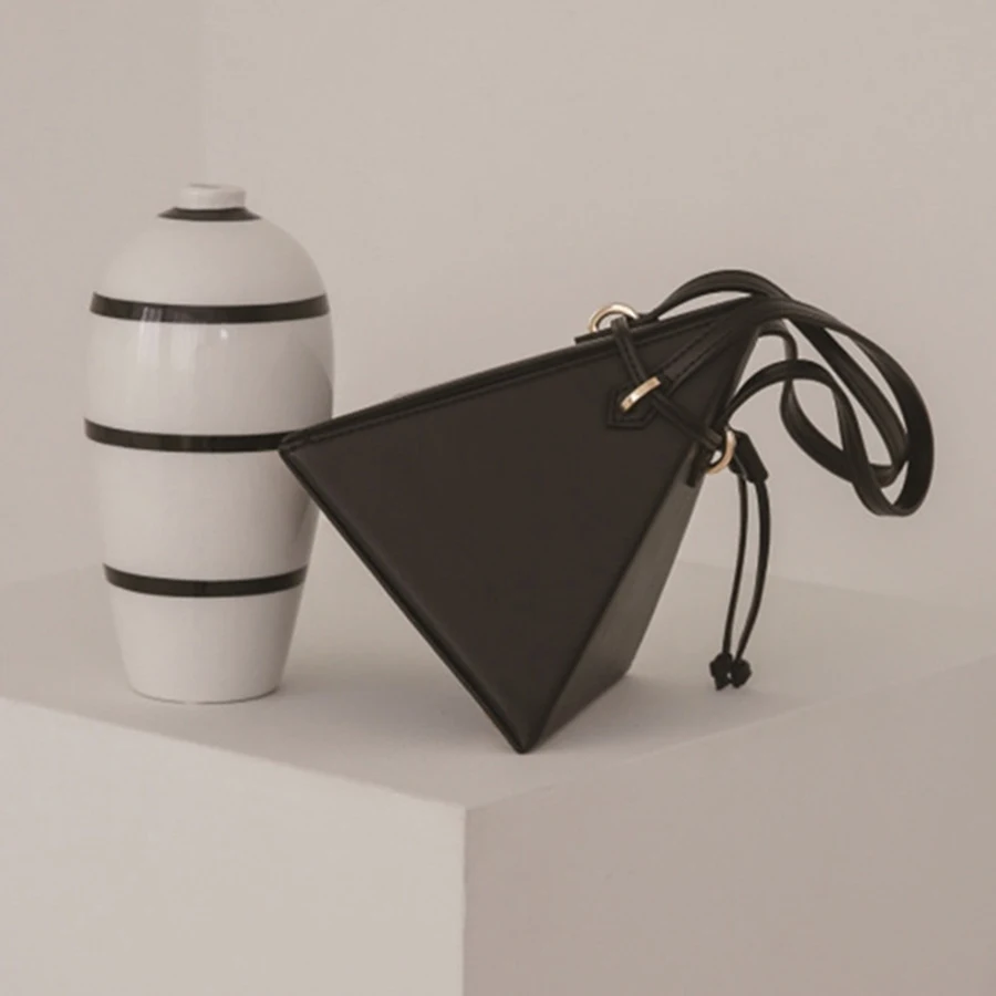New Product Creative Geometric Triangle Drawstring Women's Handbags Casual Pu Shoulder Messenger Bag Women Desi